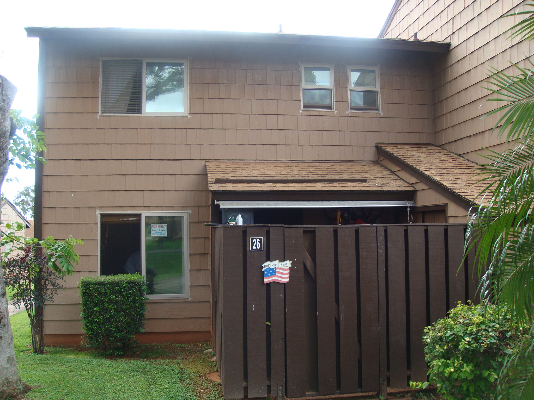 (NO LONGER AVAILABLE. PROPERTY HAS BEEN RENTED) This is a 3 bedroom, 1.5 bathroom townhouse with approximately 1,173 sf of interior living space AND a 400 sf fully screened in lanai with a roof. The lanai is currently used as a family room. Granite counter tops in the kitchen and half bath, front loading washer and dryer, 2 assigned parking stalls, close to the H-1 freeway, shopping, movie theatres and restaurants.